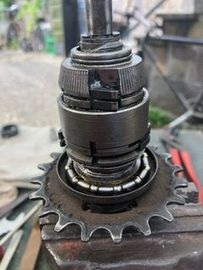 Das Tandem wurde von uns komplett bis zur letzten Schraube zerlegt und wieder neu aufgebaut d.h. es wurden u.a. sämtliche Lager und Naben sowie das Tretlager und das Getriebe gereinigt und instand gesetzt.