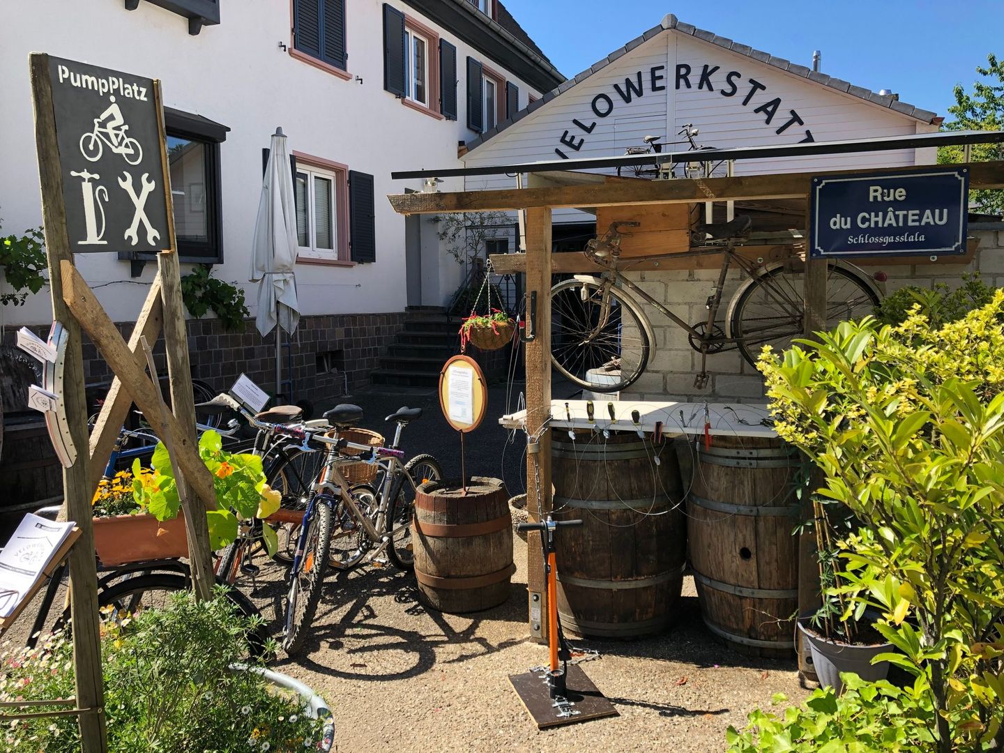 Vor unserer Werkstatt habe wir die Möglichkeit geschaffen dass ein Radel geschwind aufgepumpt und/oder eine Schraube angezogen werden kann