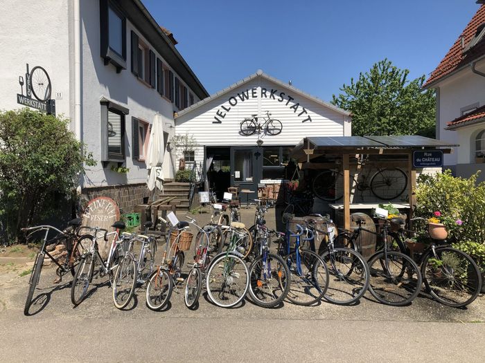 Demnächst sind hier verschiedene Räder zum Verkauf zu sehen. Zum Beispiel Jugendräder, Kompakt- und Klappräder, Historische Knochenschüttler, Ältere französische und italienische Rennräder und Deko Räder.